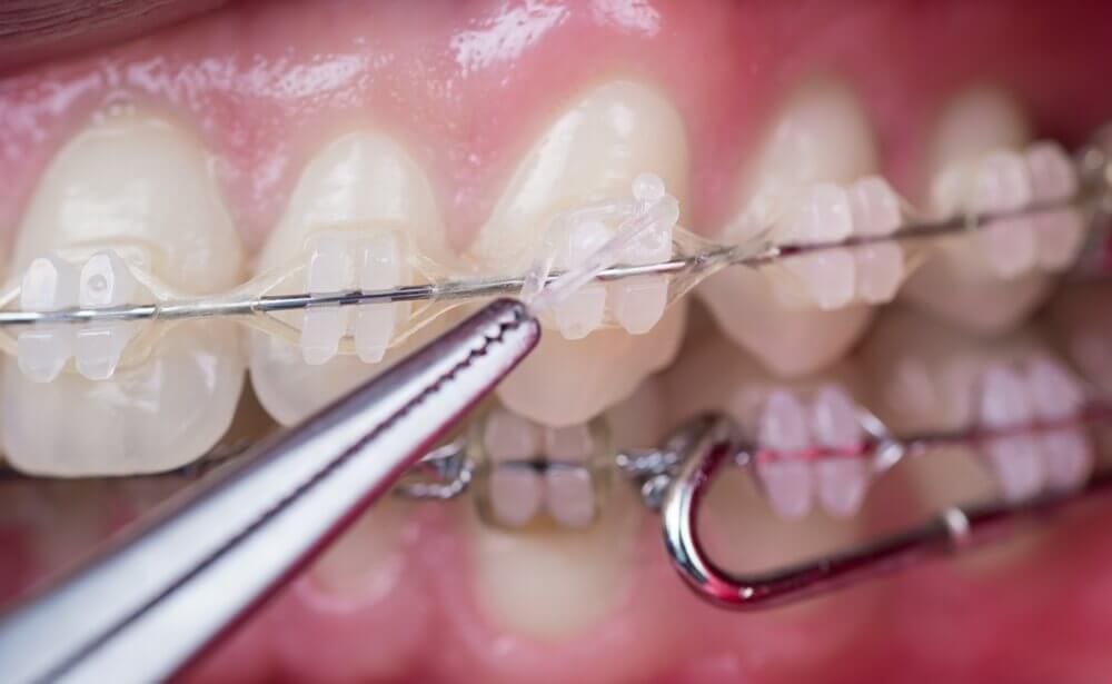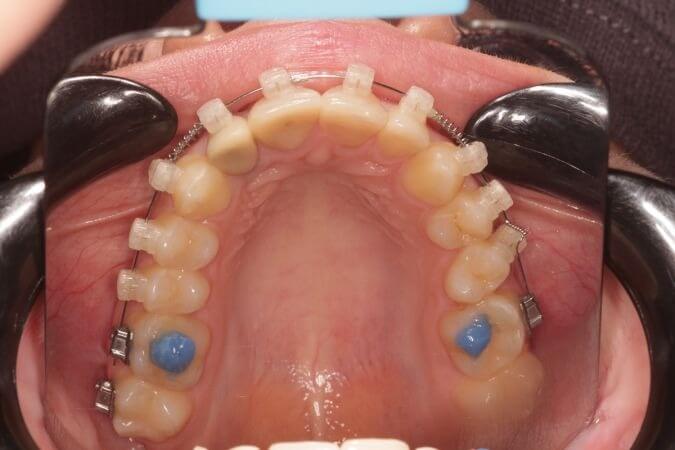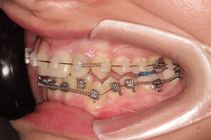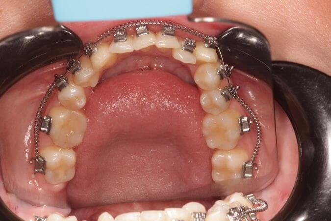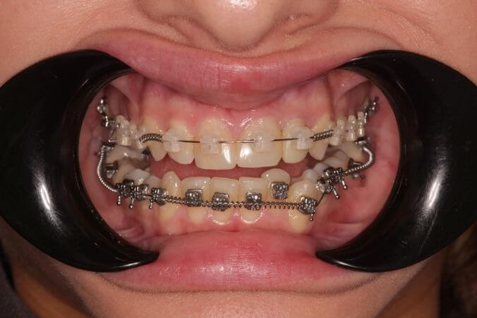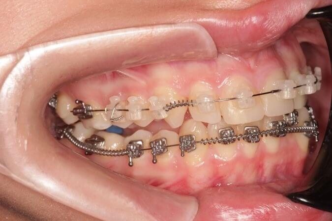 Нередко на фотографиях вы можете видеть цепочки, эластики и пружины. Эти элементы создают усилие на зубной ряд, перемещая группы зубов объединенных единой дугой.
