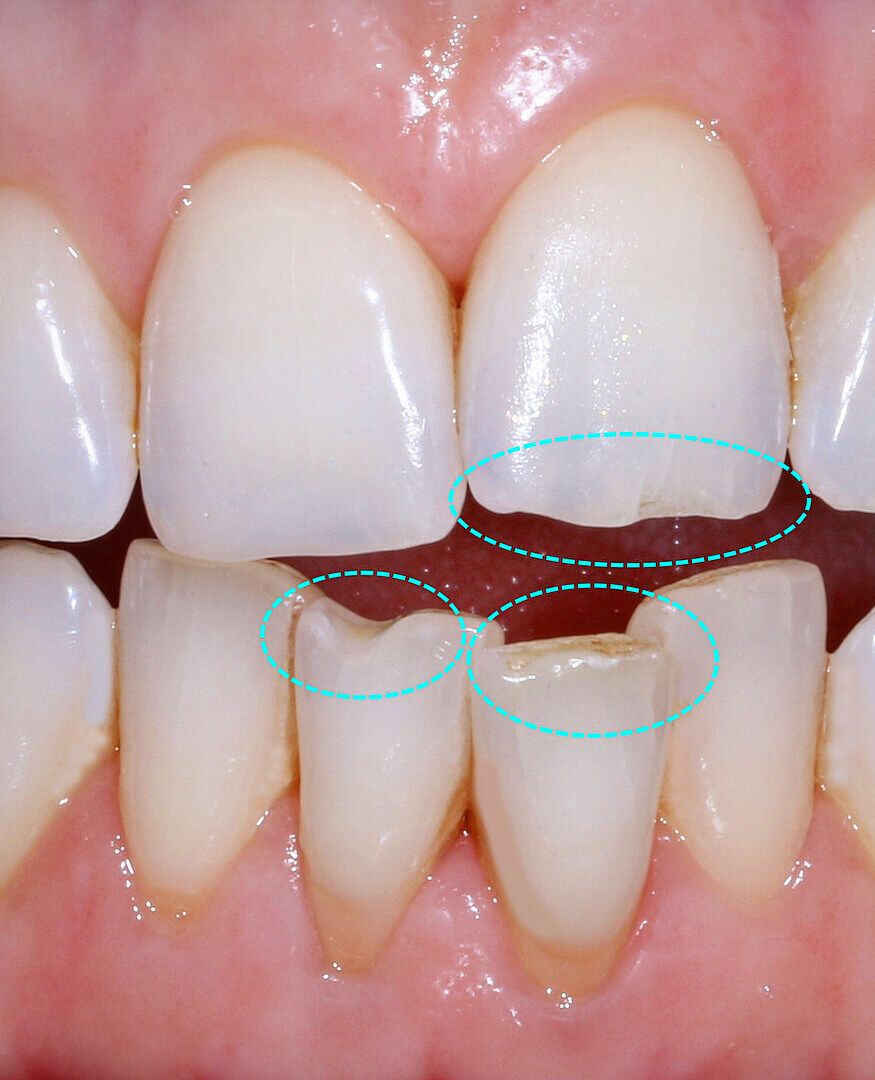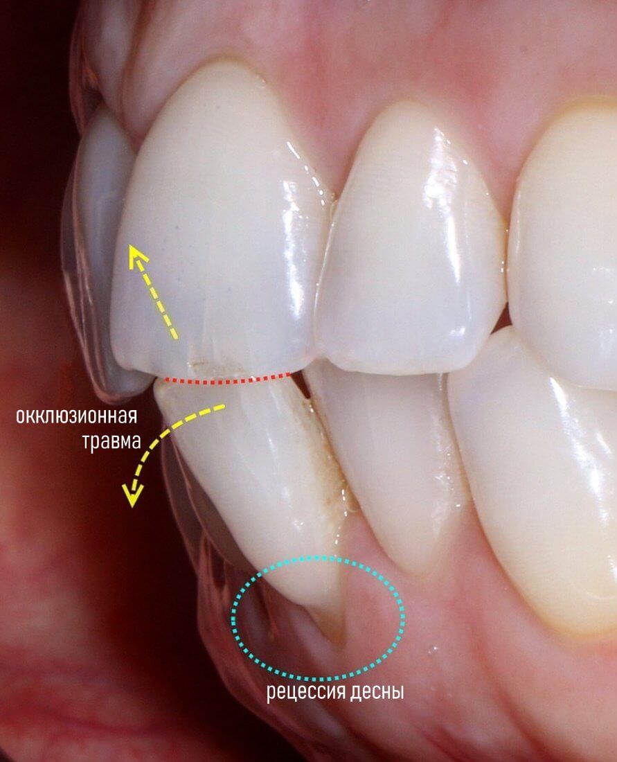 Данная аномалия приводит к неравномерному стиранию эмали, а зубы, находящиеся вне зубного ряда, получают окклюзионную травму.