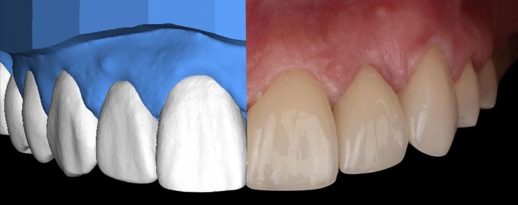 Соответствие внешнего вида новой улыбки ожиданиям пациента зависит от слаженной работы и профессионализма двух специалистов: стоматолога-ортопеда, работающего непосредственно с зубами; и зубного техника, изготавливающего коронки или виниры. Доктор вместе с техником проводит анализ фотографий, а также гипсовых или цифровых оттисков пациента, для понимания того, какие именно параметры эстетики утрачены. Затем на основе данного анализа с учетом личных пожеланий пациента создается модель его будущей преображенной улыбки. Далее зубной техник послойно создает индивидуальные керамические реставрации, которые полностью повторяют оптические качества красивых зубов. В зависимости от клинического случая это могут быть как коронки, так и менее травматичные частичные микропротезы, например виниры.